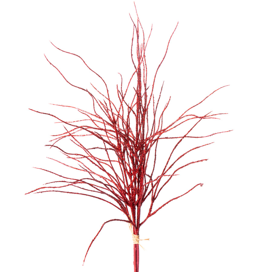 With a timeless, yet classic natural appeal, this multi-stem twig bundle will help create unique centerpieces and tablescapes year after year.  With a glittered finish and available in three different colors, this spray looks great on display all season through.