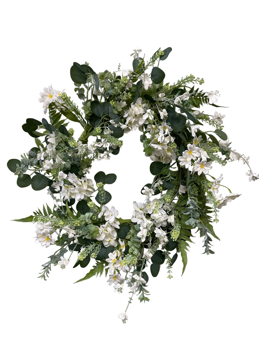 This fresh, crisp collection features a unique mix of white flowers and greens, making for a joyous combination. This 18" pick is easy to shape and looks great all spring and summer long.