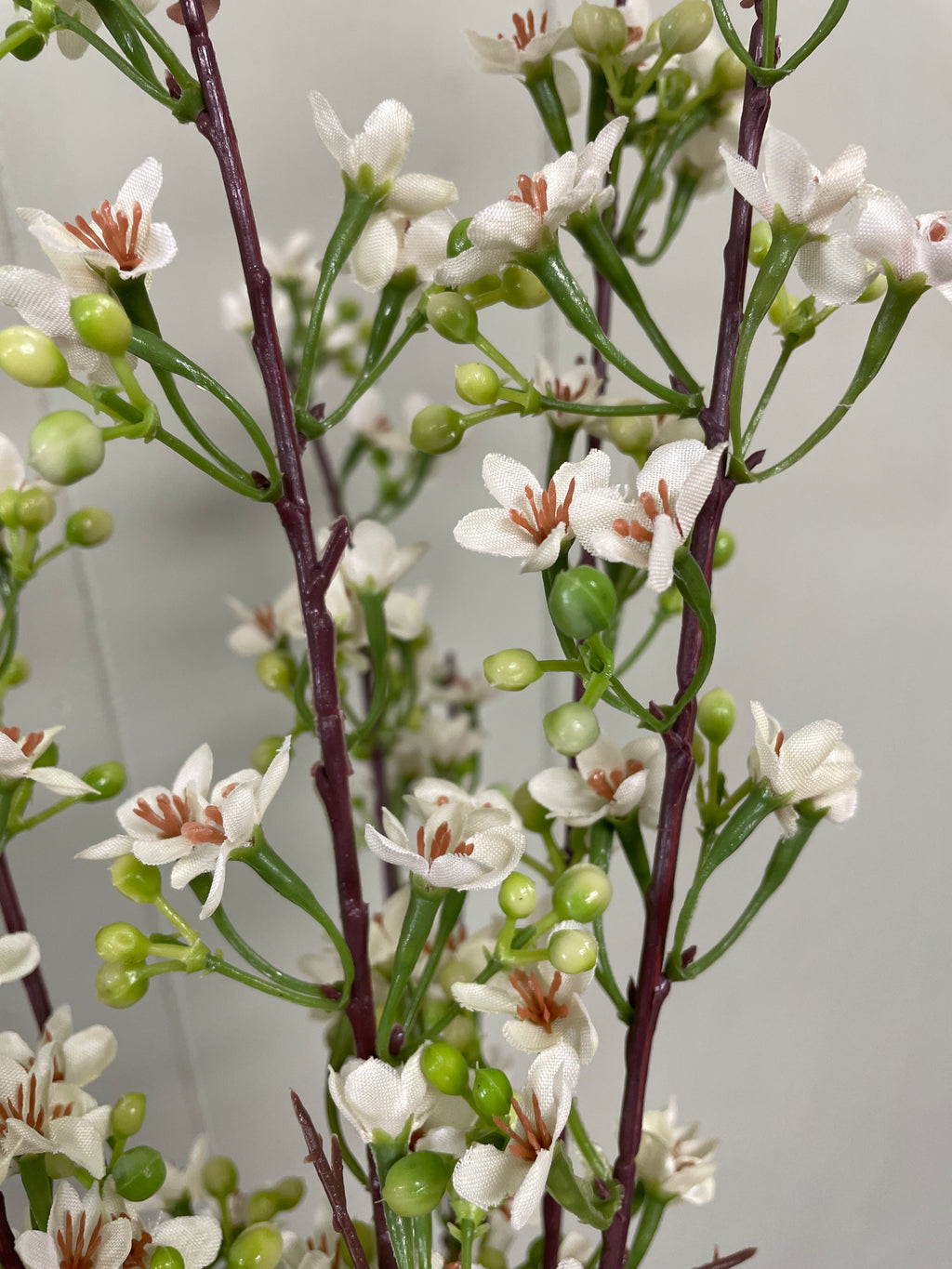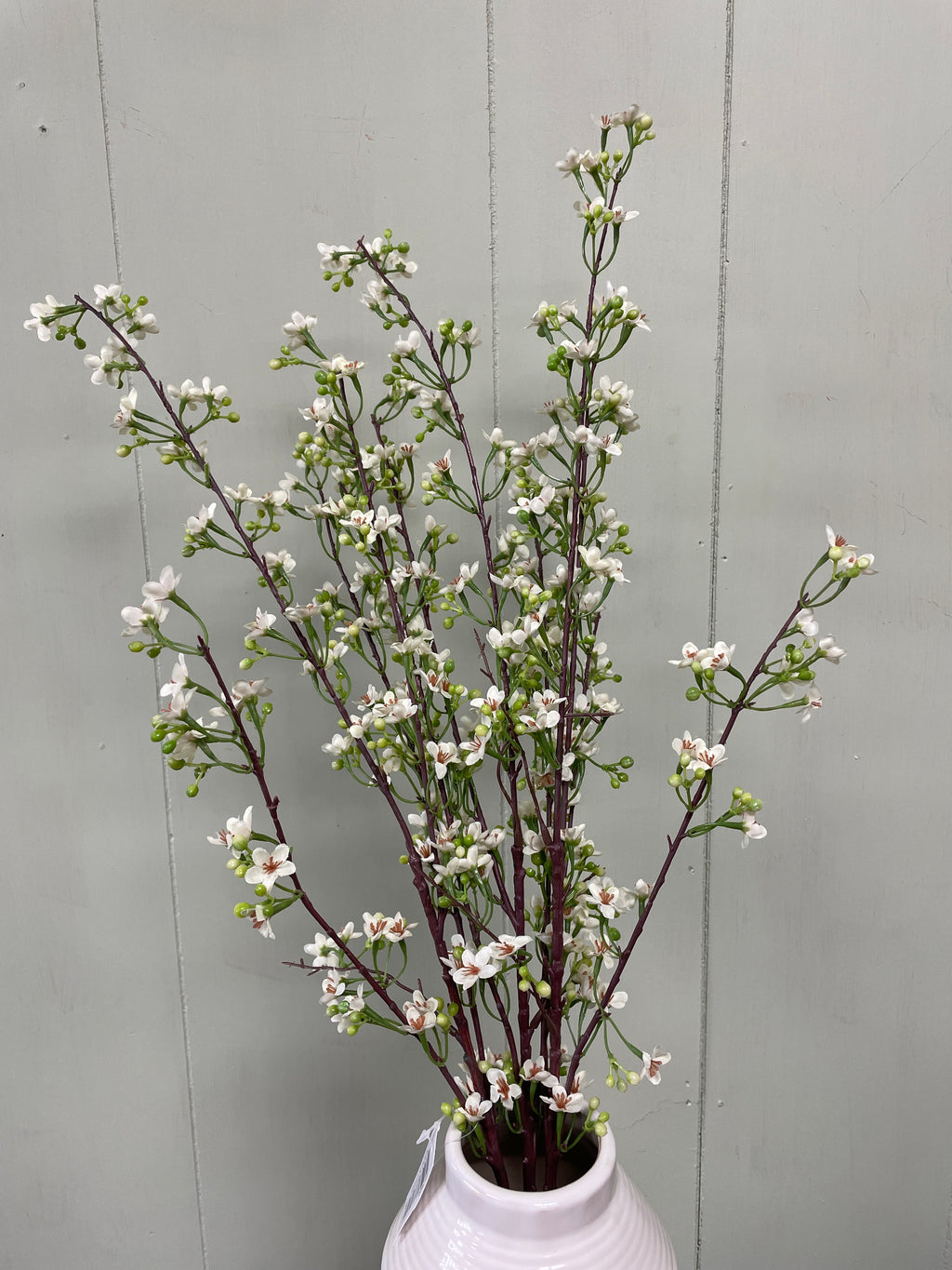Celebrating the colorful splendor of Spring and Summer, this wax flower collection is the perfect way to bring out the vibrant hues of the season in any space. Each bush has three stems of blooms. Great for displaying in a vase, container, or tucked into a wreath.