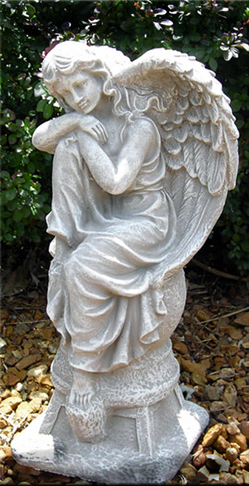 This concrete figurine features an angel resting on a globe.  This angel is wonderfully detailed, and is perfect for the landscape or to set at the gravesite.