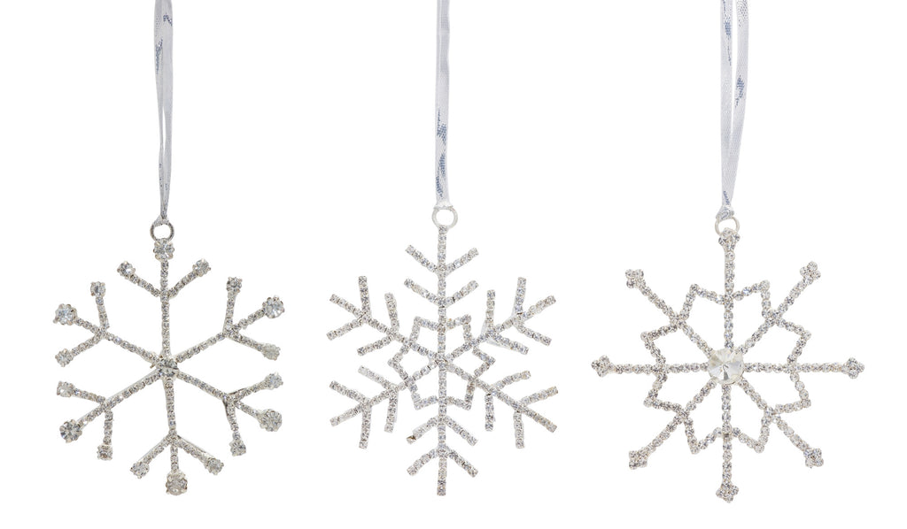 A delicate, yet elegant addition to your holiday décor, the rhinestone snowflake ornaments will really add sparkle and shine to the branches. Featuring hand-applied rhinestone accents is the ultimate finishing touch to these elegant pieces.